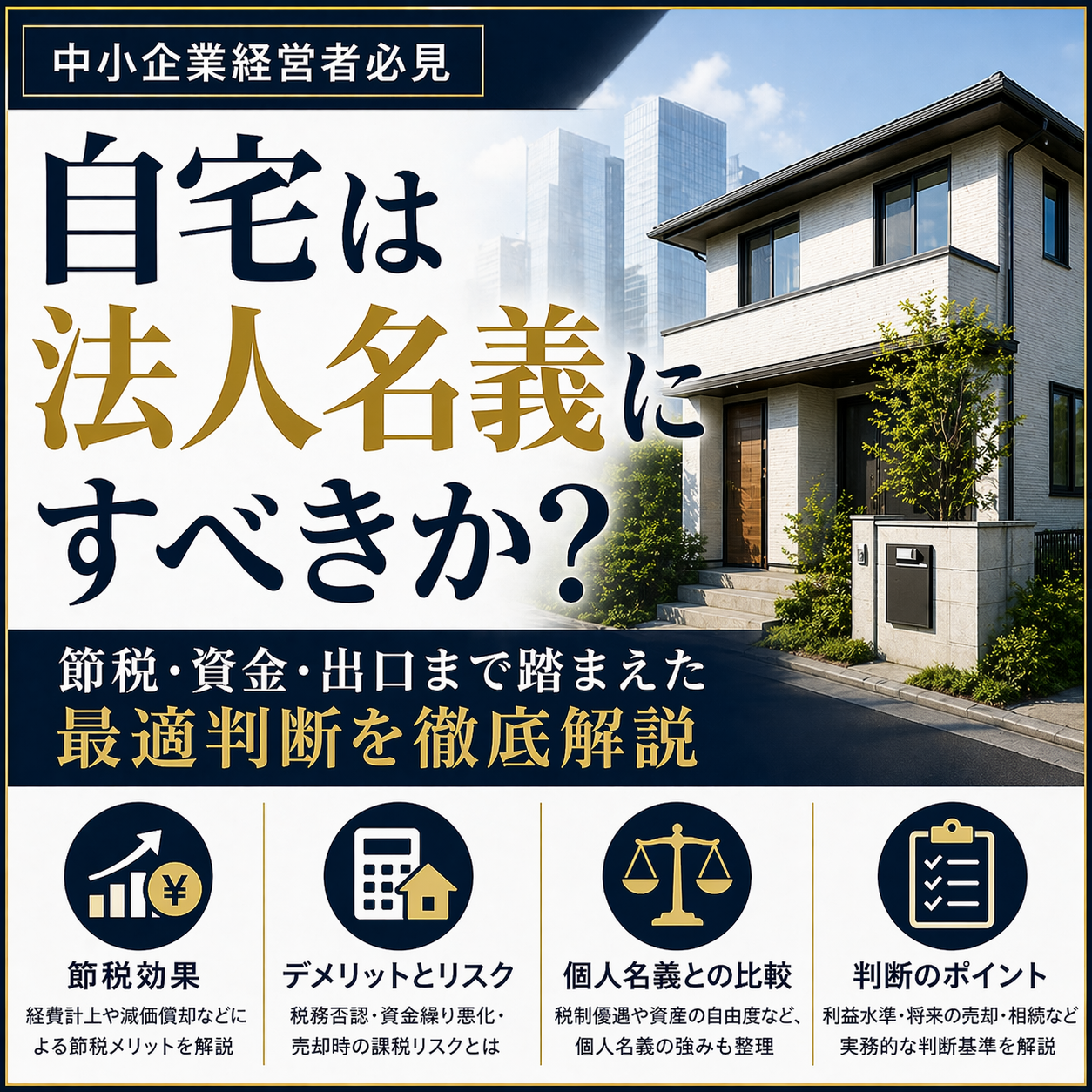 自宅は法人名義にすべきか?節税・資金・出口まで踏まえた最適判断